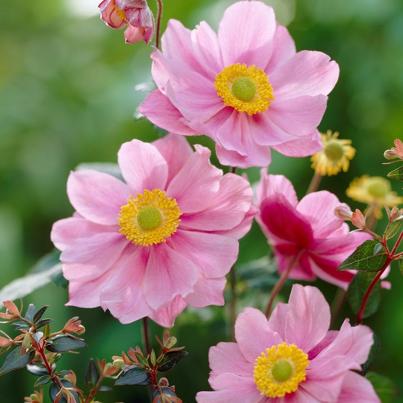 The Anemone hybrida ‘Serenade’ is a beautiful, late-summer blooming perennial that adds charm and vibrancy to any garden. Its semi-double, soft pink flowers with golden-yellow centres sit atop tall, elegant stems, swaying gracefully in the breeze. Ideal for adding height to borders, ‘Serenade’ also makes a stunning cut flower for arrangements.