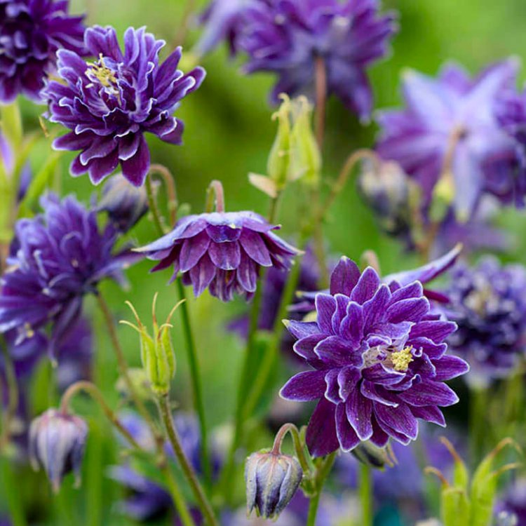 Known as Christa Barlow Columbine, Aquilegia ‘Christa Barlow’ is an eye-catching perennial with unusual, double-spurred flowers that have a rich purple colour. Its exquisite blossoms, which attract pollinators like bees and butterflies, are a focal point in any garden and bloom from late spring to early summer. With a moderate height of up to 90 cm, the plant is a great option for woodland garden settings or medium borders. ‘Christa Barlow’ is best in partial shade but may also withstand full sun; it needs wet, well-drained soil. With only occasional deadheading to encourage more flowering and a light mulch to conserve soil moisture and regulate temperature, this cultivar requires very little care.