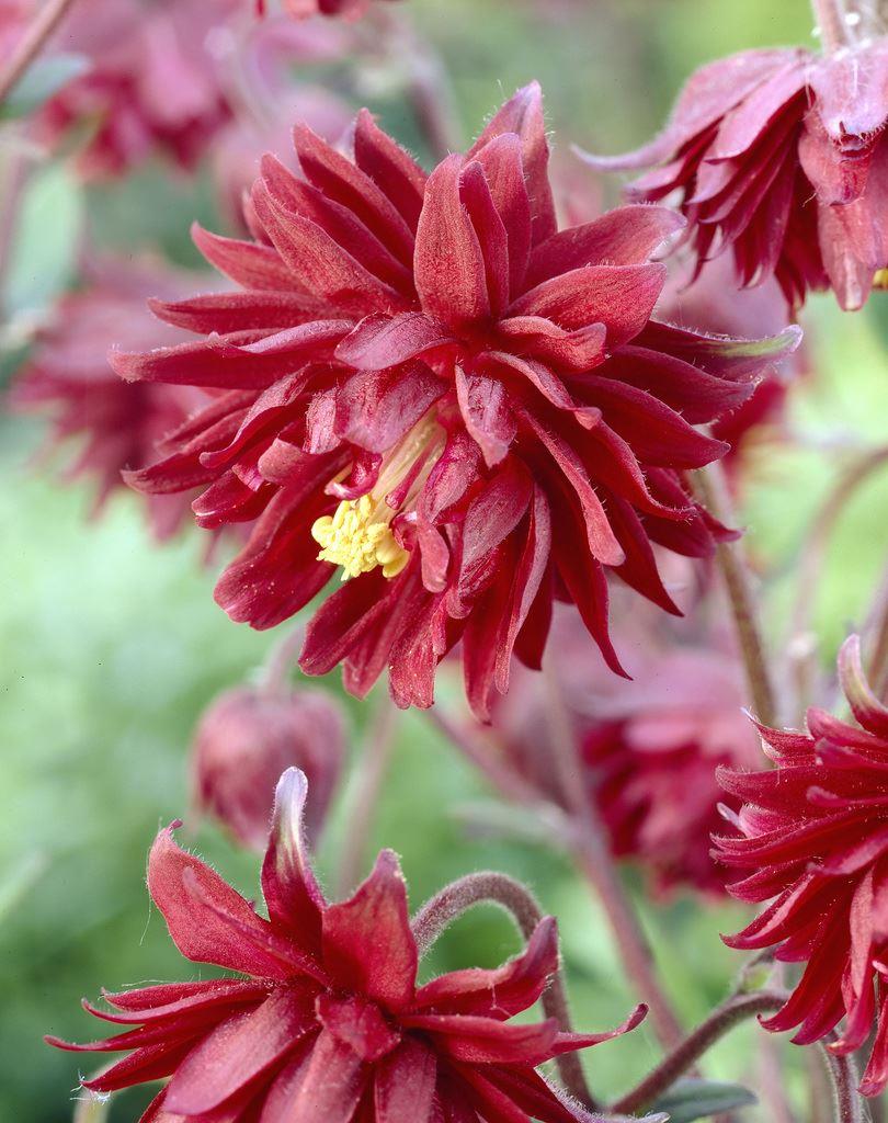 A beautifully colored, slightly shorter specimen with nodding, double ruby-red flowers that rise on red stems. This popular plant, particularly among garden designers, really is lovely with the its fully double, spur-less burgundy flowers appearing in late spring above ferny green leaves. The rich, deep red flowers look particularly lovely with fountainous grasses or with traditional cottage garden flowers. Also, makes a superb gift for the gardener that likes a tipple of its namesake, or for that special ruby anniversary. Supplied in approx 1 litre containers.