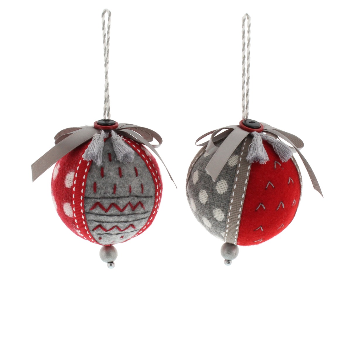 Assorted Red And Grey Ribbon Bauble – Christmas Decoration – Pack of 2