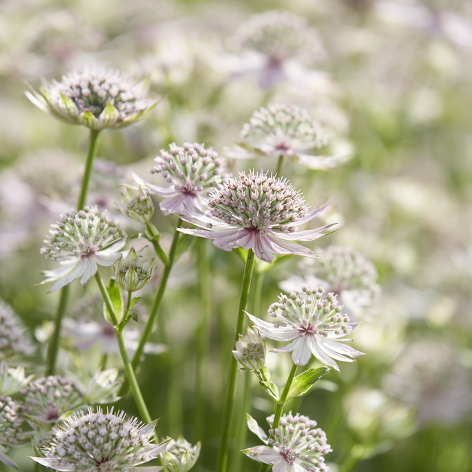 The captivating perennial Astrantia major ‘Florence’ is prized for its clusters of tiny, star-shaped flowers that have a gentle lilac-pink colour. Deeply divided, green foliage complements the intricate flowers that bloom from late spring to late summer, offering a touch of elegance and charm to borders, woodland gardens, or shaded areas.