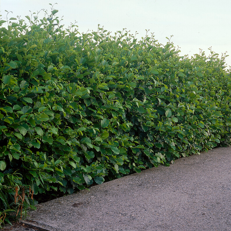 Alnus glutinosa, sometimes called Common Alder or Black Alder, is a sturdy, quick-growing tree that is perfect for ecological landscaping and hedging. This plant is especially well-known for its capacity to flourish in damp environments, which makes it ideal for locations near bodies of water or other sources of moisture. The Black Alder adds seasonal interest with its lustrous, dark green foliage that turns yellow in the autumn.