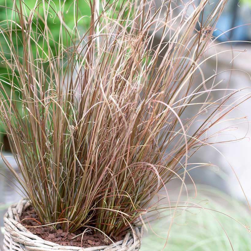 The coppery-brown leaves of this evergreen Carex Buchananii grass look strangely like hair. An extremely versatile plant – can be grown as a specimen and in containers. Brown flower spikes in mid- and late summer.