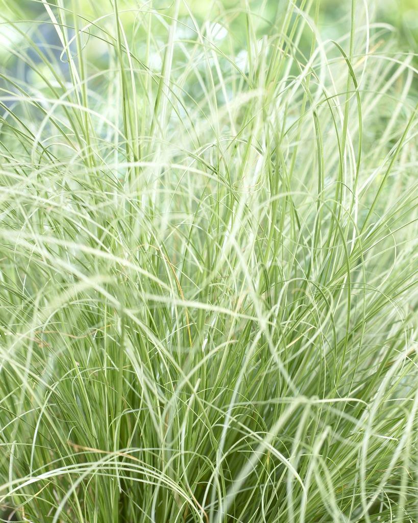 A lovely ornamental grass with arching pastel green leaves and curling tips.