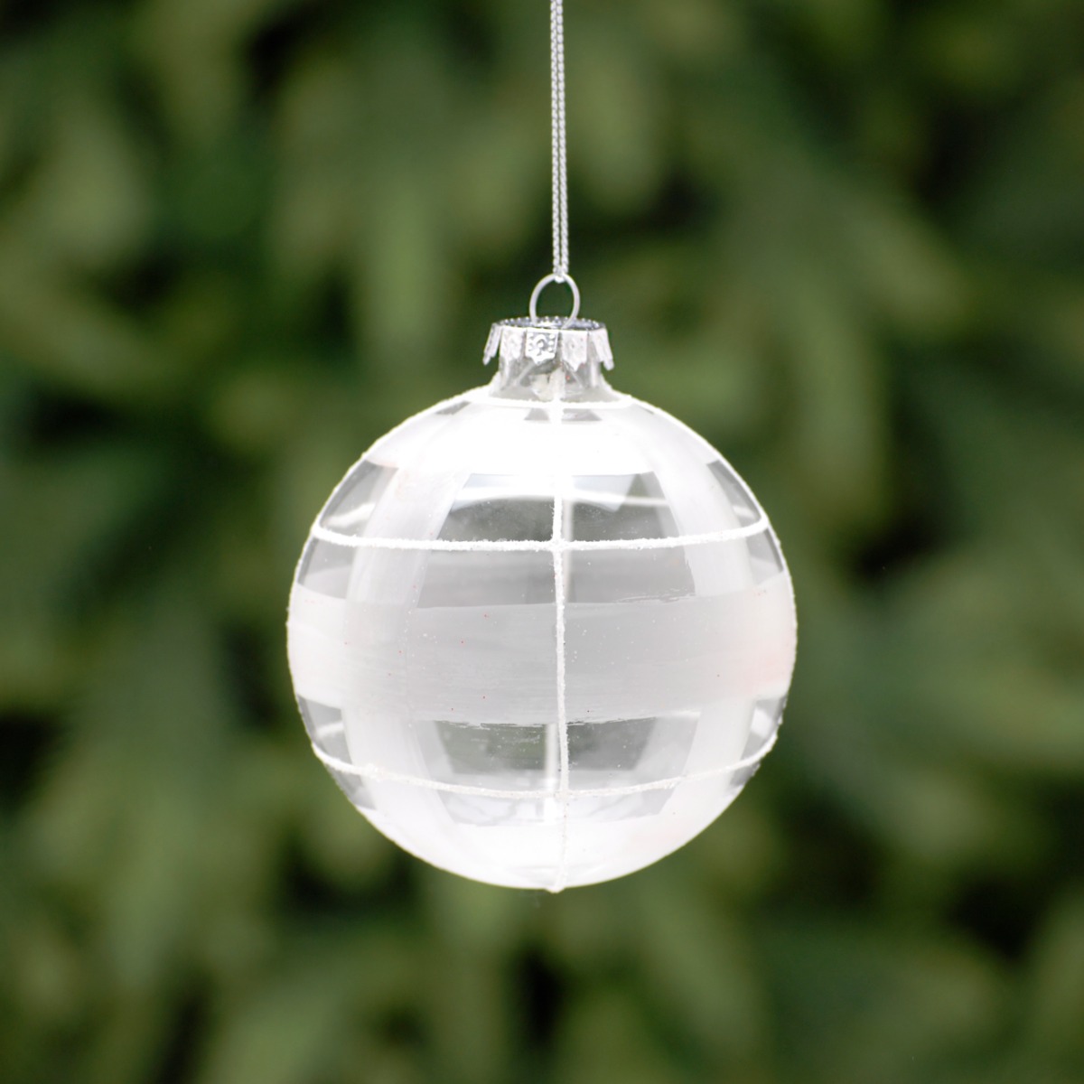 Clear Frosted And White Glitter Glass Bauble – Christmas Tree Decoration