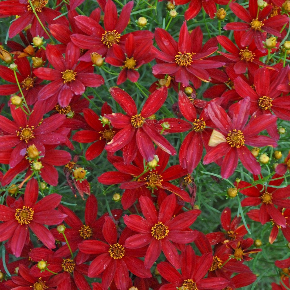 Unlike many compact perennials that offer only a brief burst of colour, ‘Hot Paprika’ flowers tirelessly through the summer months, delivering a beautiful display that refuses to fade into the background. Coreopsis verticillata Sizzle & Spice ‘Hot Paprika’ is a wonderful, long-flowering variety producing masses of stunning bright red petals right through until the autumn. Each daisy-like bloom is held above finely textured foliage, forming a neat, rounded mound that stays compact while continuously producing fresh flowers.