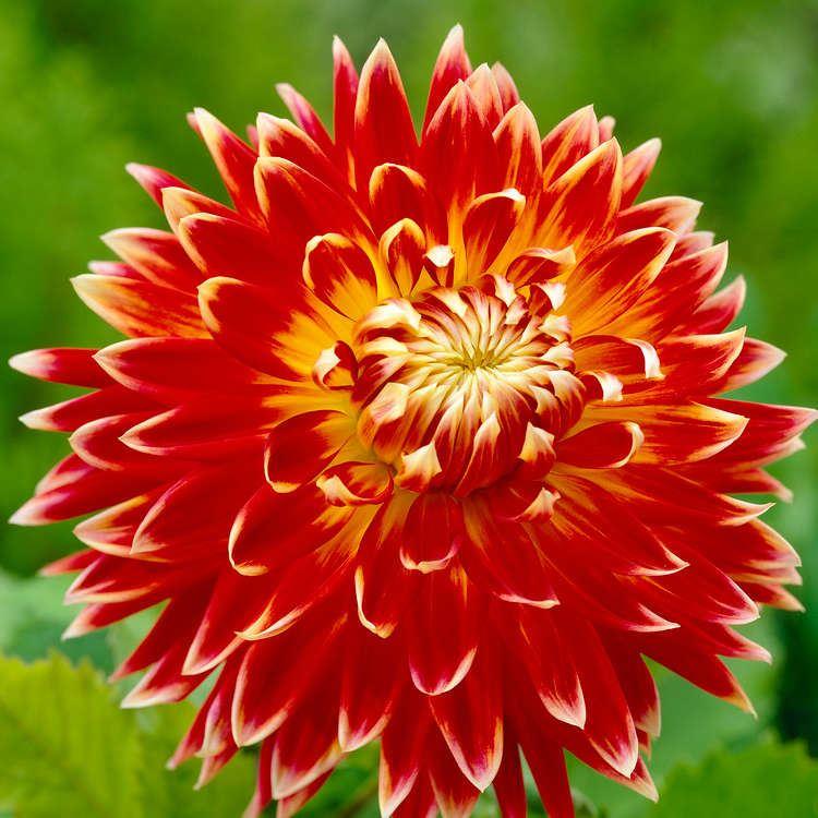 The beautifully textured flowers of this new introduction are real showstoppers. The dark red flowers blushing into yellow towards the center will make a spectacular show in your summer garden. Each petal also has a slight white tip creating an outstanding display. Large flowered Decorative type dahlia growing upto 28”/70cms tall. Suitable for containers and be sure to plant lots as they make excellent cut flowers. Will bloom from mid-summer, right through until autumn.