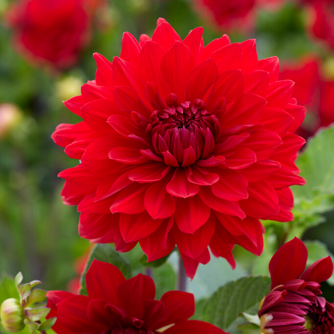 Garden Wonder’ is a superb, decorative type Dahlia and a true, garden wonder! A free-blooming border dahlia with eye-catching crimson blooms up to 5 inches across. Plants are a tidy 2 feet tall (60cm), perfect for border use. Plant in full and enjoy lots of colour from mid-summer right through to Autumn.