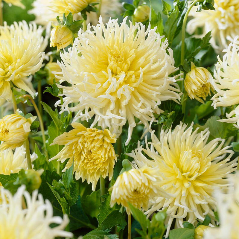 To bring out the best in its yellow blossoms, Dahlia ‘Yellow Star’ should be planted in full light to achieve maximum brilliance. The soil needs to be regularly moist, well-drained, and fertile. Frequent feeding will improve its capacity for development and blossoming.