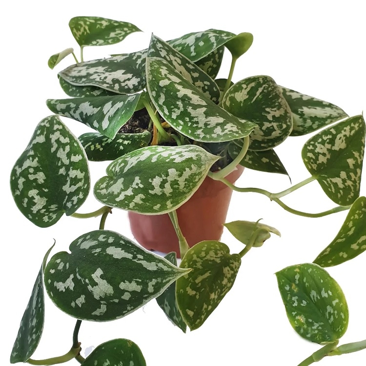 This is the highly sought and unusual silky smooth Pothos that resembles silver satin colouration with the lighter flecks that adorn its rich green foliage.