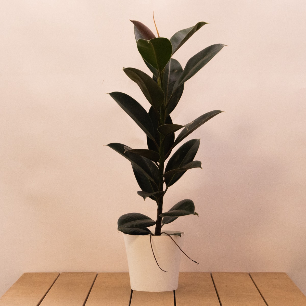Keep Ficus elastica Melany somewhere where it will receive bright, indirect light – direct light can burn the leaves. It will also tolerate lower light conditions. Make sure to keep the soil slightly moist, watering when the top layer of soil has dried out.