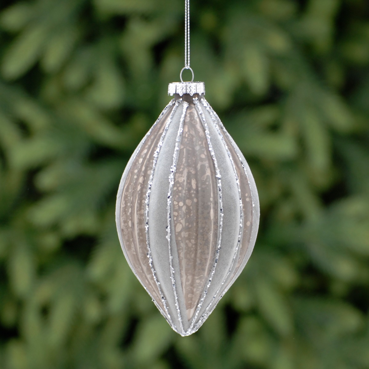 Flocked Grey Segment Glass Olive Bauble – Christmas Tree Decoration