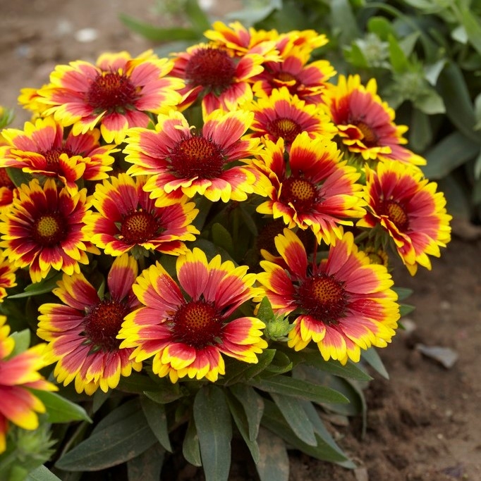Arizona Sun Gaillardia or Blanket Flower has wonderful blooms that are orange, red and bright yellow in colour and are daisy-like. Their foliage is a grey green.