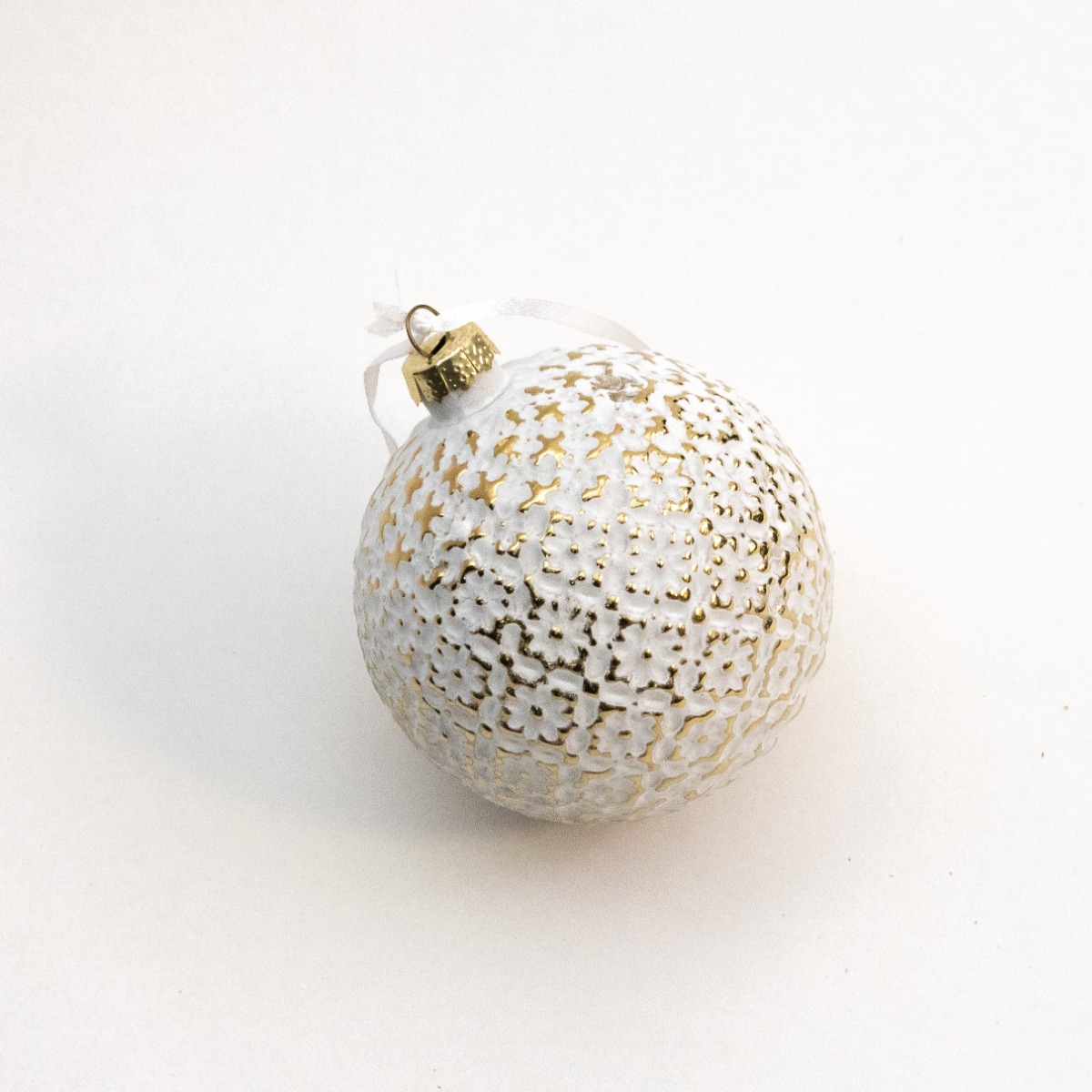 Gold glass baubles to take the hassle out of the Christmas season. They have a unique pattern in shimmering gold, contrasting against their snow-white backdrops. Matched with beautiful detailing and shine, this set captures real Christmas luxury.