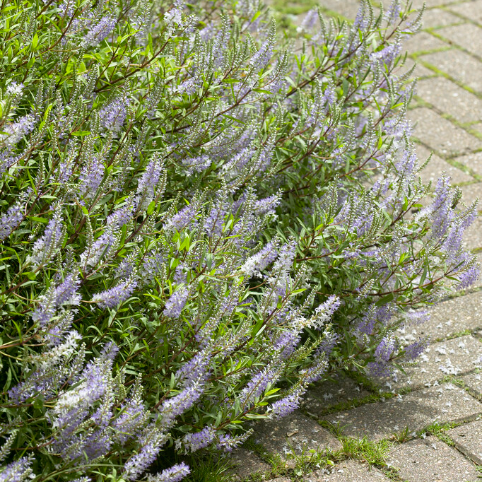 Hebe ‘Blue Clouds’ is a charming evergreen shrub valued for its hardiness and delicate beauty. This type is well-known for its long, narrow leaves, which have a gentle blue-grey colour and give garden scenes a calm, refreshing feel. ‘Blue Clouds’ produces a profusion of small lavender-blue blooms in late spring to early summer.