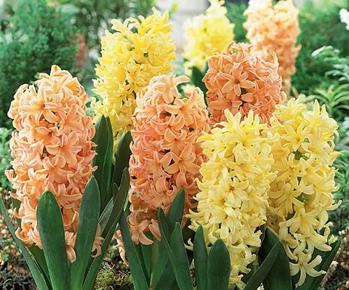 Celebrate the arrival of spring with Hyacinth Spring Glow, a quality mix of 8 bulbs in vibrant shades of bright yellow and golden apricot. These blossoms provide a warm, uplifting glow to beds, borders, containers, and windowsills.