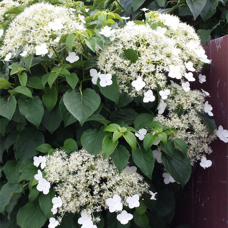 These easy-to-grow climbing beautiful hydrangeas really are star plants in the garden. Clinging by aerial roots to a fence or wall, it will romp along once established to cover with its almost heart-shaped, fresh green leaves. These turn a buttery shade of yellow in autumn adding an extra dimension of interest. Of course, the main attraction are the masses of showy, lacy, white flowerheads that appear from late spring and early summer. They will thrive even in shady spots and troublesome areas with a northern aspect—these are climbers that will grow where many others fail. Of course, they need not be confined to these awkward spots.