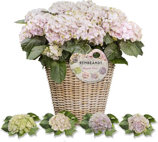 Big, luxurious flower heads that change tone as they mature make this hydrangea a true showpiece for patios and garden borders alike. Hydrangea ‘Rembrandt Elegant’ is prized for its generously sized mophead blooms, which open in soft, creamy blush tones and gradually develop subtle depth and character as the season progresses. The rounded flower clusters are produced abundantly through summer, creating a full, opulent display that feels both refined and long-lasting. Neatly shaped and well-branched, this variety is perfectly suited to decorative containers as well as front-of-border planting where its elegant presence can be admired up close.