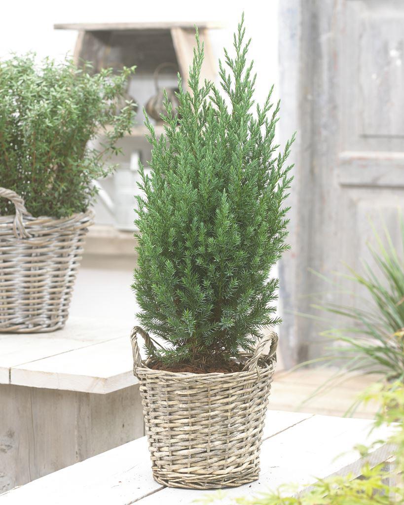 Juniperus chinensis ‘Stricta’ is a beautifully architectural, evergreen conifer, admired for its narrow form and finely textured blue-green foliage that holds its colour throughout the year. It’s naturally neat, columnar shape brings structure and calm to planting schemes, making it ideal as a focal point in borders, gravel gardens or containers.