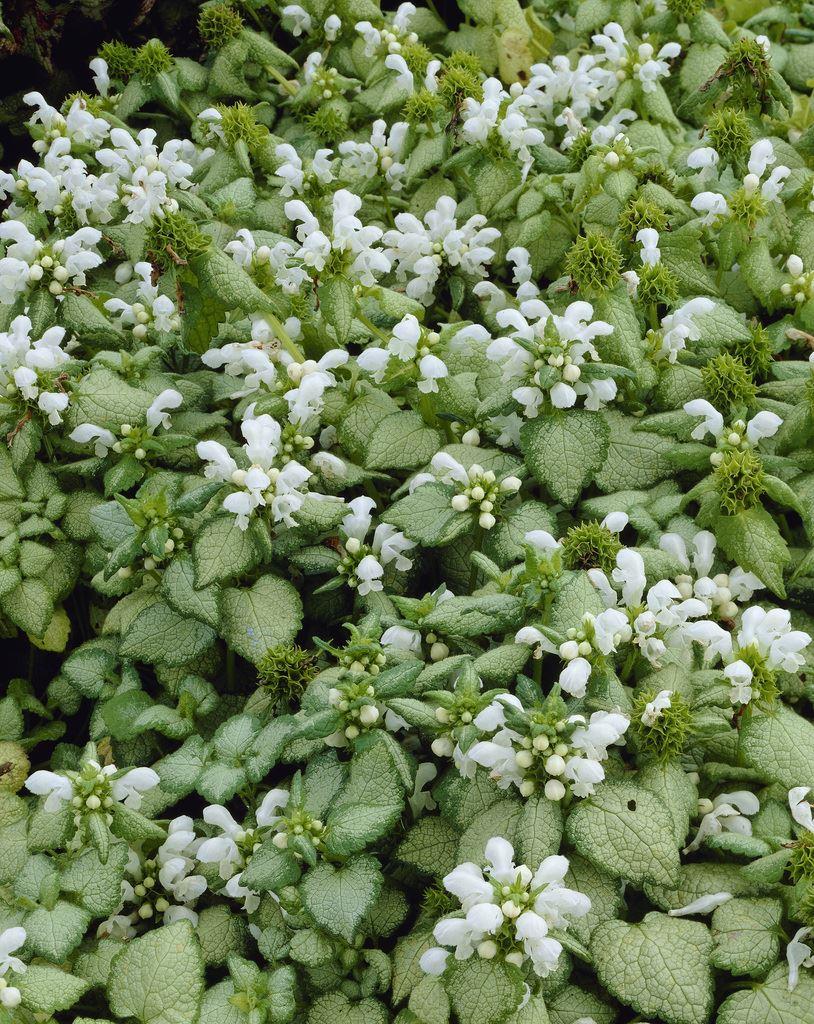 Predominantly silver blotched foliage with green frills, which trails and provides white flowers in spring. This beautiful evergreen groundcover plant will light up the base of deciduous or even evergreen shrubs and trees. It prefers partial shade, and once established, will even flourish in difficult areas of dry shade.