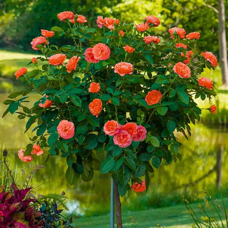 This Rose Tree provide a formal yet welcoming aspect to any garden, making them perfect for framing patios, garden paths, or doorways. They need well-drained soil and grow best in full sun.