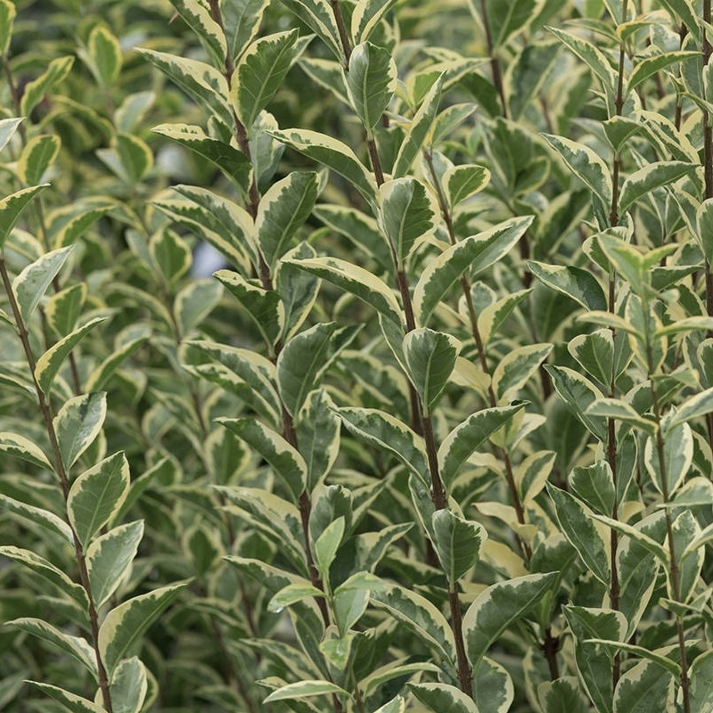 Ligustrum argenteum, commonly known as variegated privet, is a versatile evergreen shrub valued for its cream-edged green foliage that brings light and definition to the garden year-round. The oval leaves create a crisp, clean look that works equally well in formal schemes or more relaxed planting. Its dense, upright habit makes it especially useful as a hedge, screen, or structural backdrop. Small white flowers may appear in summer, adding subtle seasonal interest and attracting pollinators.