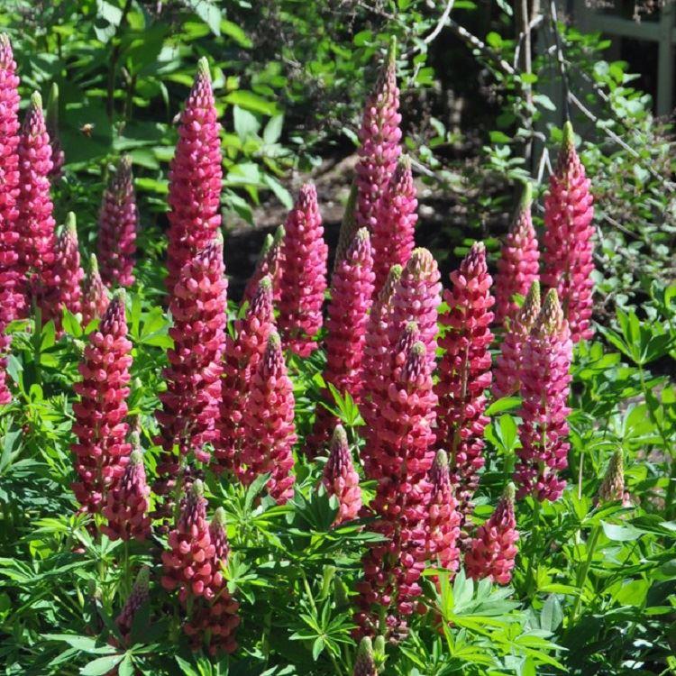 Packed with high-quality, large flower stems, Lupin ‘The Pages’ showcases rich cherry standards and deep cherry keels that contrast beautifully within each spire. The intense two-tone colouring creates depth, instantly brightening any border with its bold, confident presence. Flowering in late spring to early summer, these tall, densely packed blooms rise above attractive palmate foliage, delivering strong vertical impact and irresistible garden appeal.