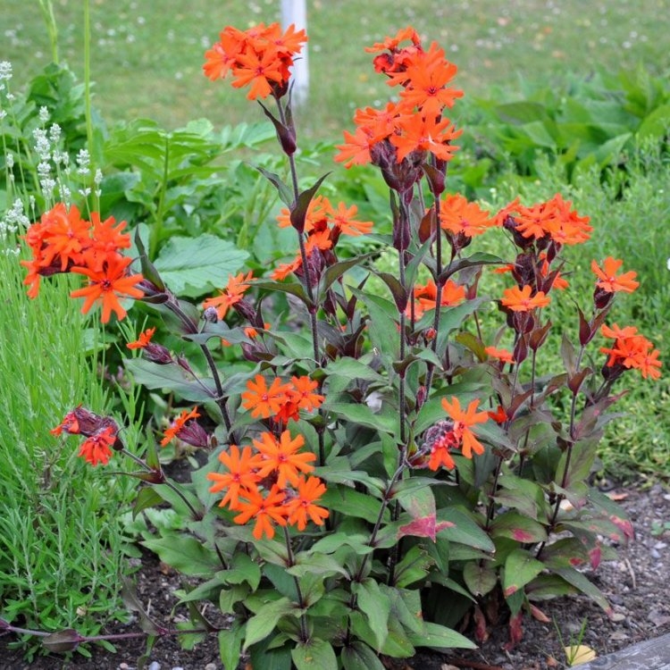 Lychnis ‘Vesuvius’ truly lives up to its name with its fiery orange-red blooms that resemble flowing lava. These fringed flowers emerge from early to mid-summer, creating a bold and energetic display while attracting pollinators. Perfect for mixed borders, wildlife planting, and cut flower displays.