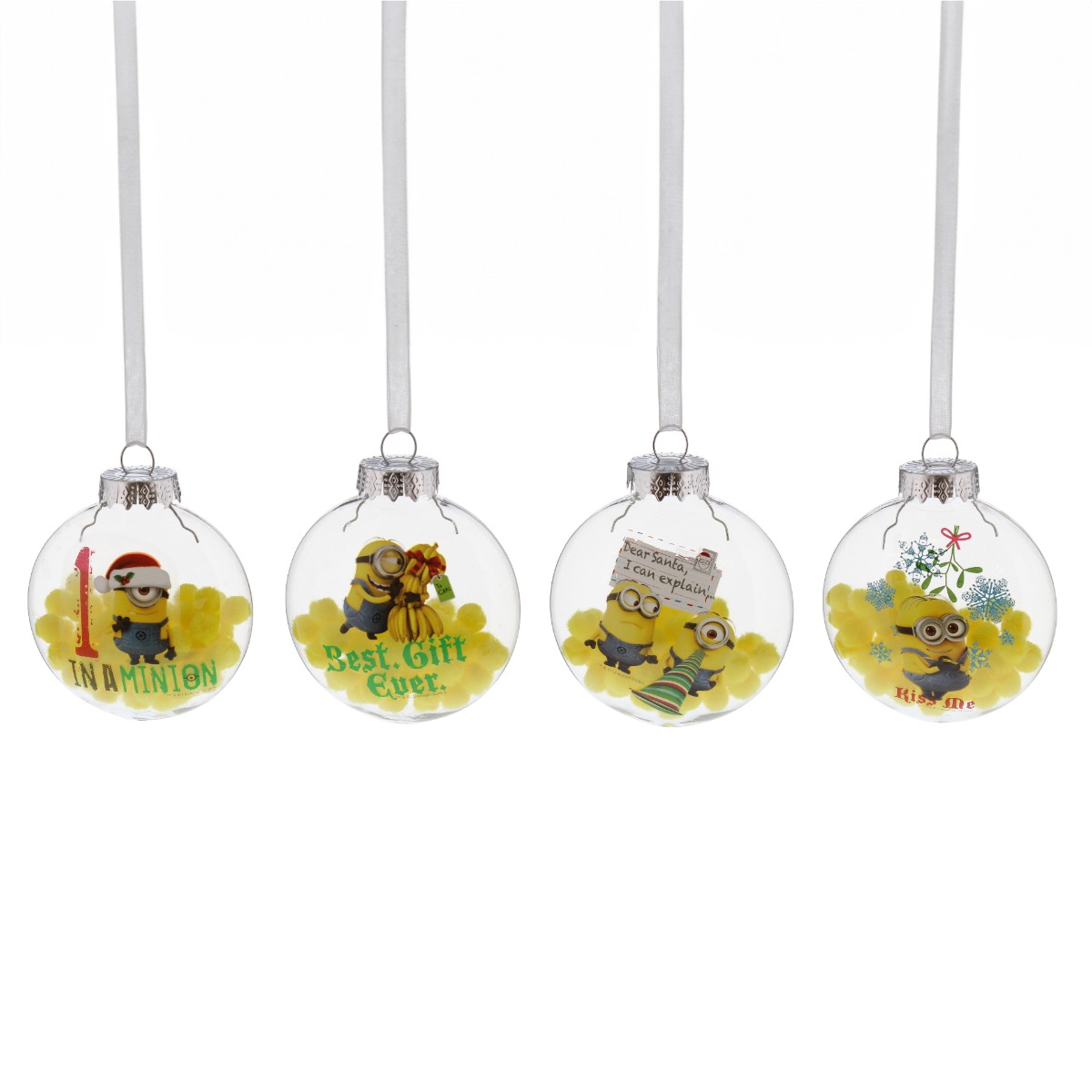 Minion Christmas Bauble – Christmas Tree Decoration – Pack of 4 Assorted Bauble