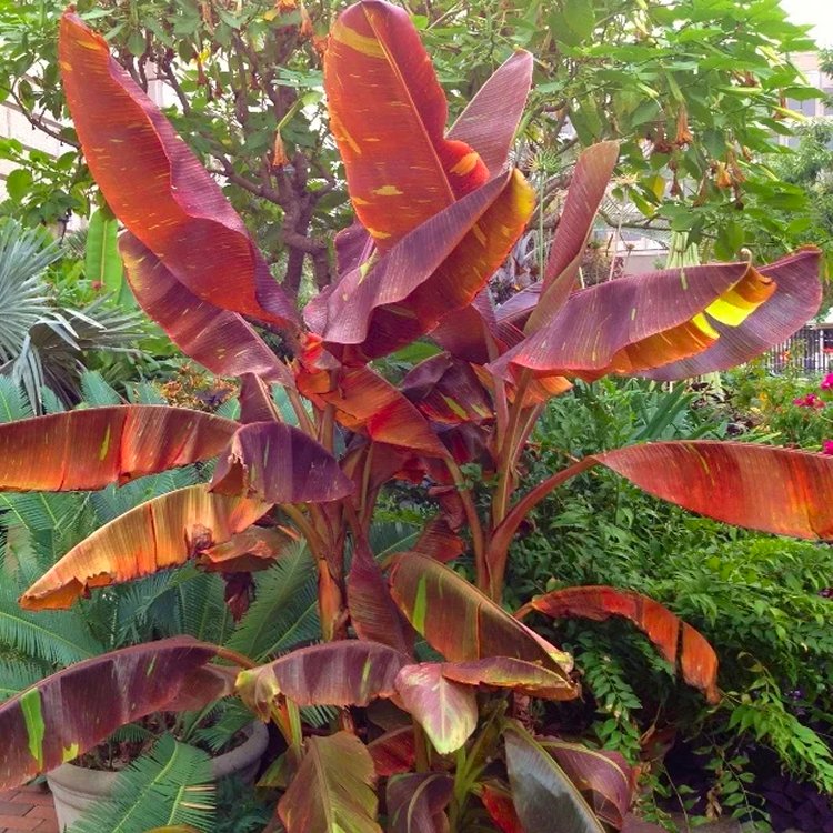 SPECIAL DEAL – Usually 14.99, today just 9.99 – Save £5!Add a fiery burst of colour to your garden or tropical collection with the Musa ‘Siam Ruby’, an extraordinary banana plant celebrated for its unusual ruby-red foliage. Each broad leaf is a striking shade of deep burgundy, with flashes of lime green that give it an exotic, almost painterly look. This fast-growing variety creates an immediate tropical impact, making it perfect for bold borders, statement pots, or jungle-themed gardens.