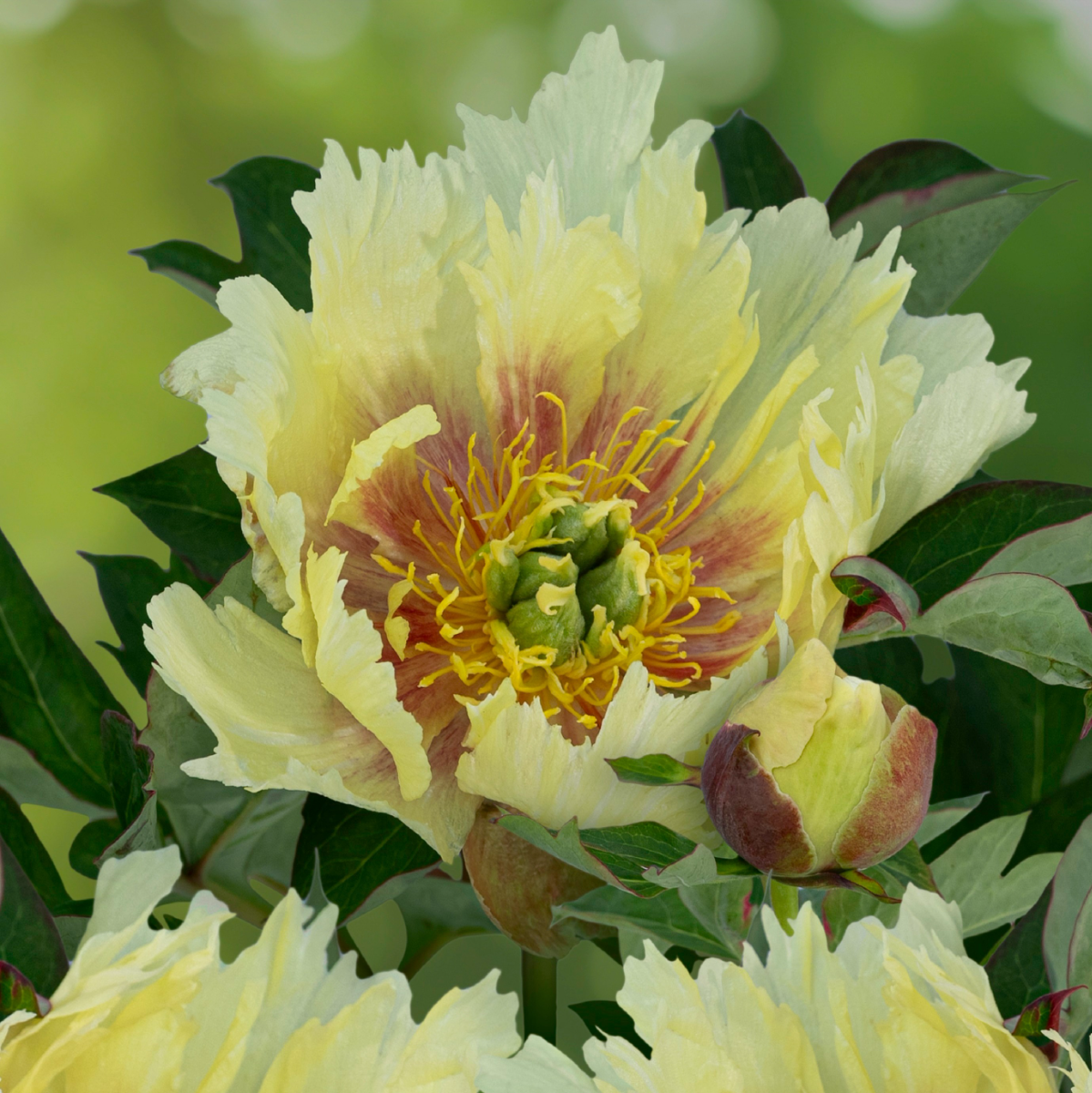 Bring refreshing sunshine into your garden with the brilliant Paeonia Itoh Yellow Dream, a lovely intersectional peony with warm, buttery yellow flowers. The huge, semi-double blooms have softly ruffled petals and a golden core, creating a brilliant, cheery show from late spring to early summer. Strong stems and elegant, finely cut leaves enhance its all-season beauty.