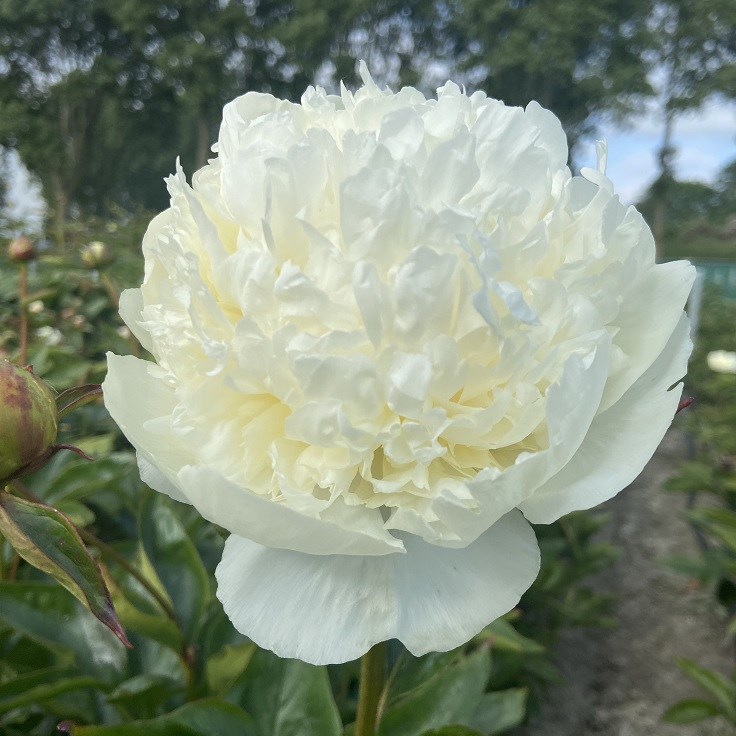 The lovely Paeonia lactiflora Bridal Gown will provide a touch of delicate romanticism to your garden. This lovely peony has huge, fully double blooms in white, typically with a trace of cream in the centre, and resembles a delicate bridal bouquet. Flowering from late spring to early summer, it provides timeless beauty to borders, cottage gardens, and flower arrangements, and its delicate smell complements its exquisite look.