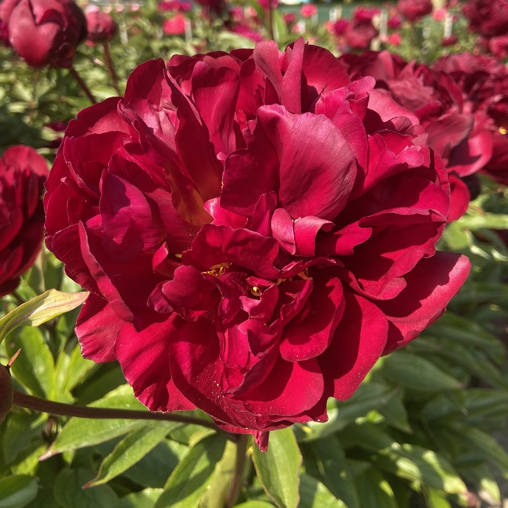The beautiful Paeonia lactiflora Chippewa will add a vibrant splash of colour to your garden. This striking peony variety produces enormous, semi-double flowers in brilliant magenta-pink, complemented by golden-yellow stamens that create a luminous core to each blossom. Blooming in early to mid-summer, Chippewa adds a bright, joyful presence to borders and stands out in floral arrangements.