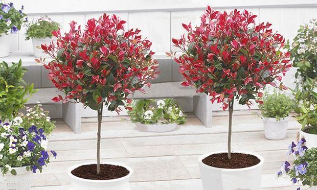 You’ll think of many different position in which to try this fantastic compact variety of Photinia, has the benefit of being easily manageable and staying neat and compact unlike traditional larger leaved Red Robin Photinias. If you want the look of bay trees with a bit of a twist, these could be the perfect choice, they are also hardier and easy to grow where bays can sometime fail to thrive.