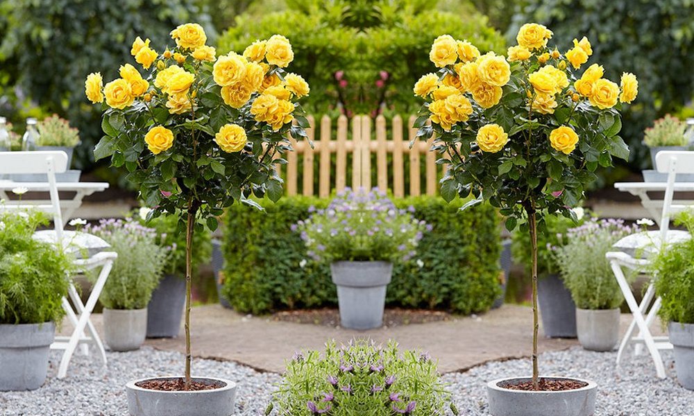 Pair of Patio Standard Yellow Flowering Patio Rose Trees