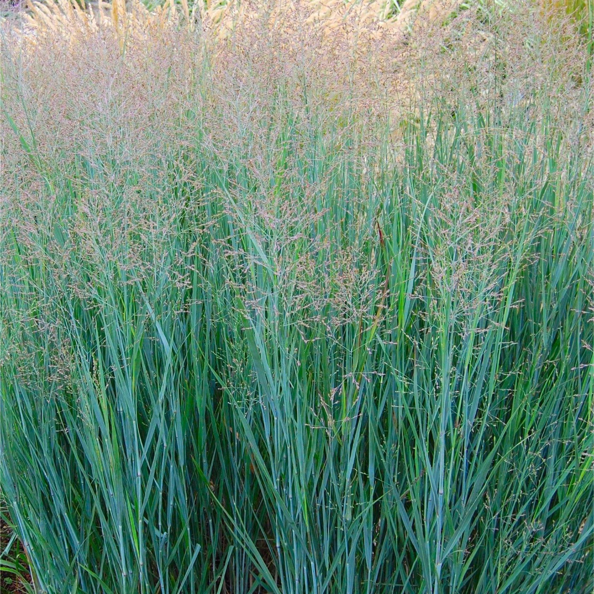 Thrives in full sun and well-drained soil. Cut back to the ground in late winter or early spring. Ideal for mixed borders, gravel gardens, or planting with late-season perennials like echinacea and rudbeckia. Great for adding texture and height. A beautiful, sturdy, upright, clump-forming switch grass, particularly admired for its light, airy looks. Metallic blue foliage with burgundy tinted seed heads in autumn. Looks stunning planted with sedums or as a back drop to lower growing grasses.