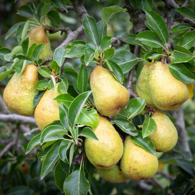 A timeless favourite, Williams Bon Chrétien is a classic dessert pear renowned for its sweet, aromatic flavour and soft, buttery texture. Producing golden-yellow fruit with a juicy bite, it’s perfect for fresh eating, cooking, or preserving. Harvested in early autumn, the pears ripen quickly off the tree, offering a short but truly delicious seasonal treat. Its spring blossom is also a magnet for pollinators.