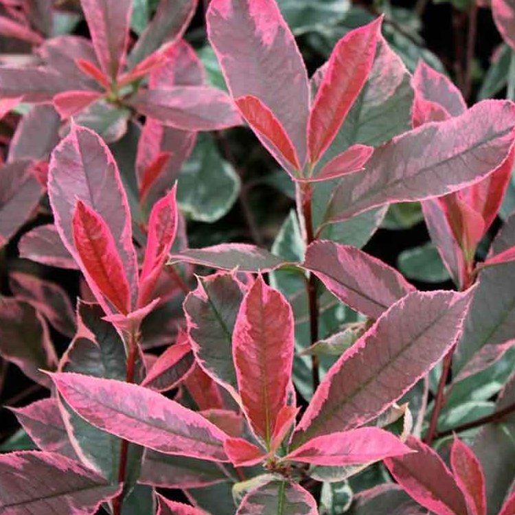 Thought to be a sport of the ever popular, and top selling Photinia x fraseri Red Robin, the foliage of Pink Marble is extraordinary. Displaying three colours, this Photinia has very special variegated foliage displaying green, cream, pink and young red shoots at the same time. Evergreen Photinias are always very popular, and these standard trees are so versatile – be it on the patio or around the garden itself. They will grow well in all free draining soils, are fully hardy, even in the coldest of locations, and need no special care – they are easy to grow. Being evergreen, they are highly ornamental over a long period and will surprise everyone with their fabulous foliage colourations, the new growth reminds us of a good quality Rose wine! You’ll think of many different positions in which to try these fantastic ‘Pink Marble’ Photinia trees. An overall height of around 130-150cm.