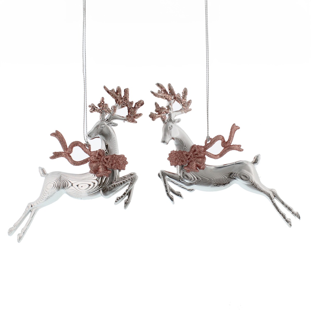 Plastic Silver Reindeer – Christmas Tree Decoration – Pack of 2