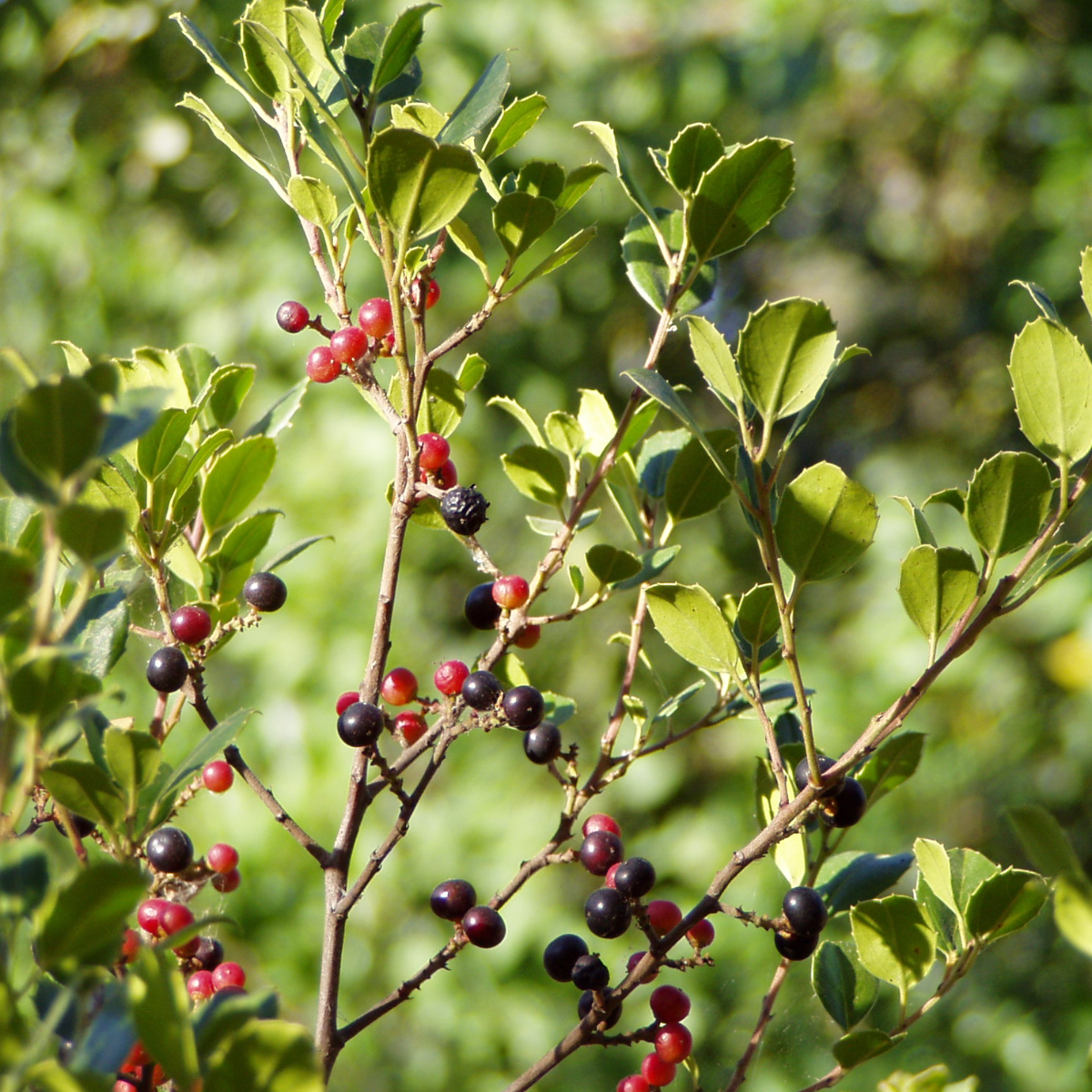 Commonly known as the Italian Buckthorn this evergreen shrub produces beautiful autumnal fruit and delicate foliage. Rhamnus alaternus originates from the shrubland of the Mediterranean and will give your garden the refined yet rugged aesthetic of Greek or Italian countryside. Perfect in a mixed border the continuous greyish-green foliage provides a lovely backdrop to contrast other plants against and displays small yellow flowers from February to April. Glossy red berries emerge in autumn and gradually become darker ripening to a deep purple/black. This medium sized shrub has a maximum height and spread of 4 meters with a spreading but erect habit.