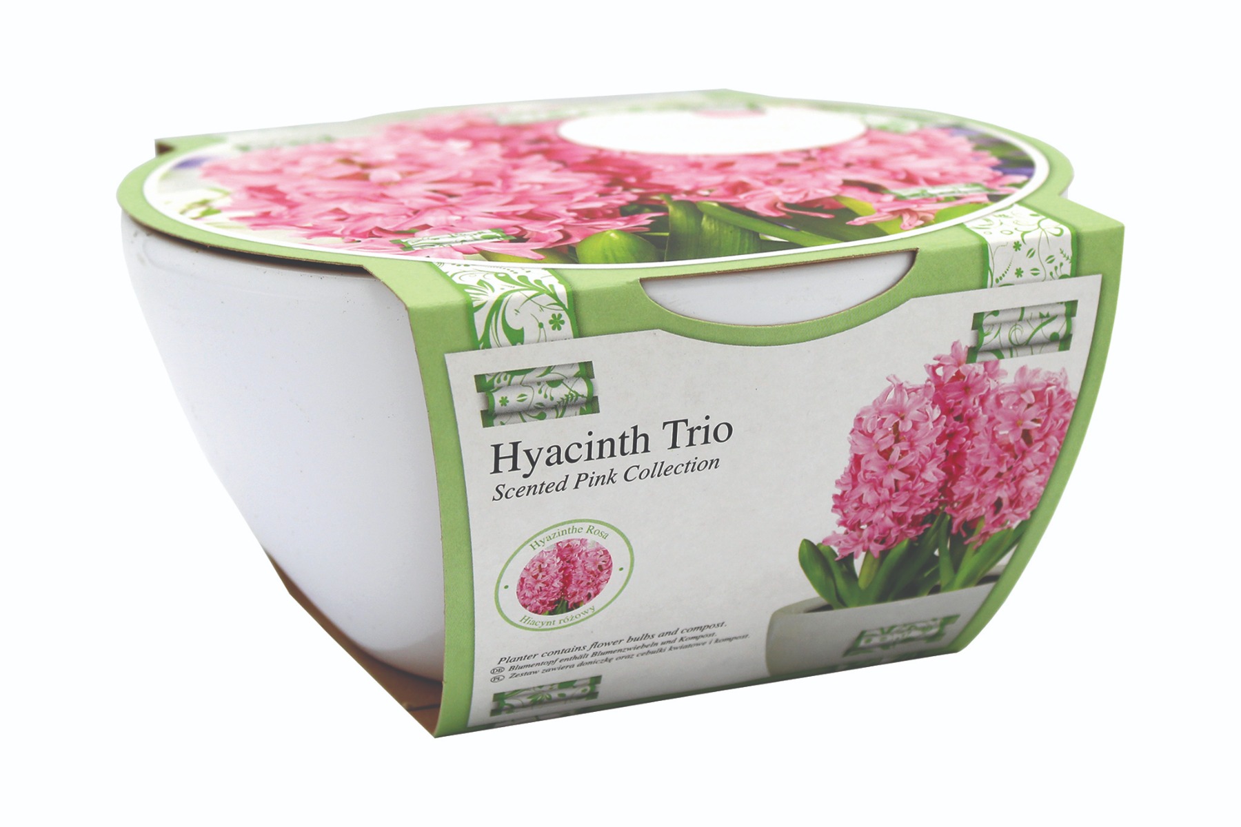 This kit gives you everything you need to grow your own trio of beautiful pink hyacinths. Experience the joy of watching your own plants grow and flourish.