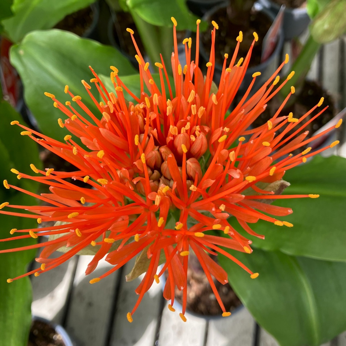 Scadoxus ‘Orange Wonder’ – Powderpuff Blood Lily – in Bud & Bloom