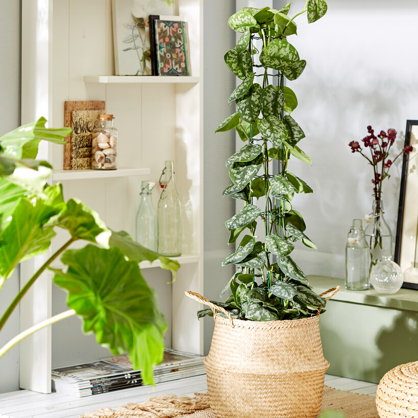 Bring soft texture and subtle shimmer to your indoor space with Scindapsus pictus ‘Trebie’, a gorgeous trailing houseplant with heart-shaped, velvety green leaves splashed with silvery markings. Also known as Satin Pothos, its elegant, cascading vines make it perfect for hanging baskets, shelves, or trailing from tall planters. Low-maintenance and air-purifying, it’s a top pick for stylish, modern interiors.