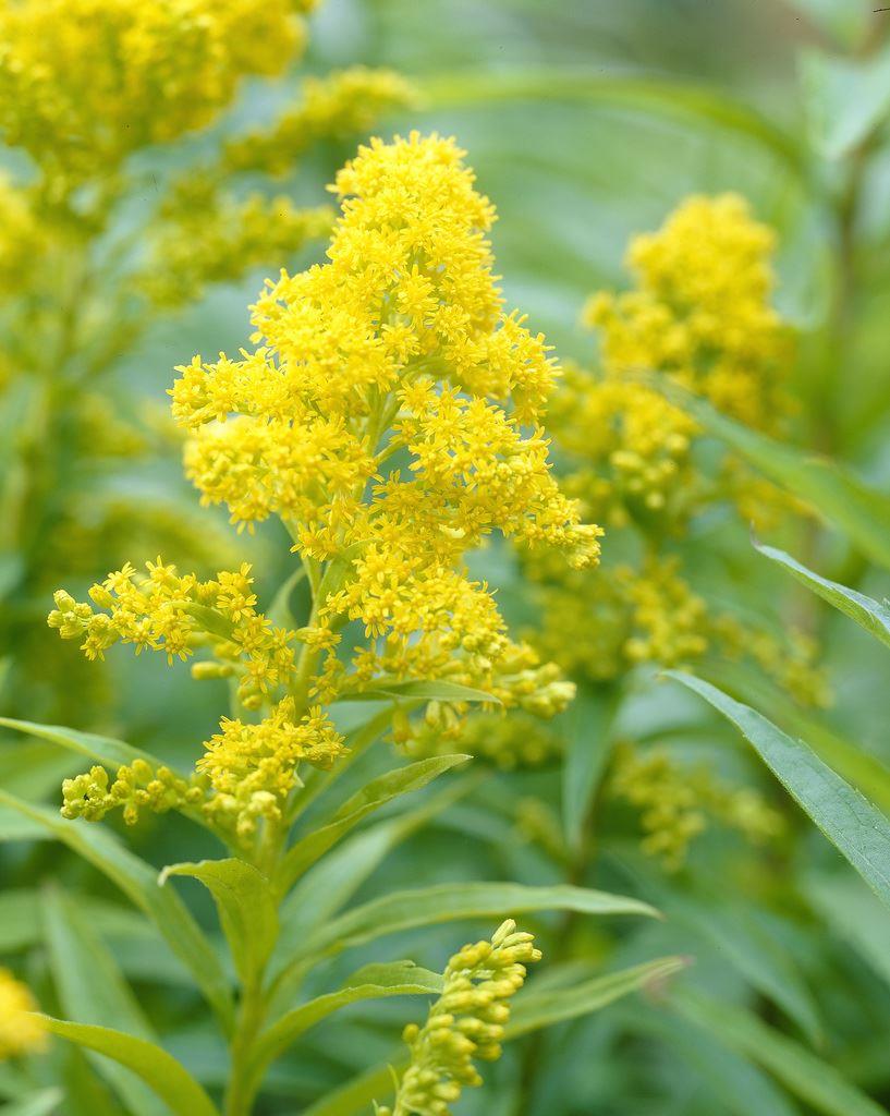 Long golden flower spikes top off rough-textured arching stems to provide a spectacular burst of colour at the very end of summer. Solidago ‘Goldkind’ is excellently suited to garden culture and has very few problems with rust or mildew that seem to trouble other varieties.