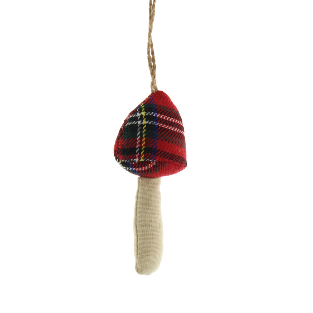 This fabric mushroom is sure to add a natural, unique element to your festive style this Christmas. This decoration features a bright red tartan cap, paired with a natural-toned stem, creating a blend between traditional charm and cosy textures.