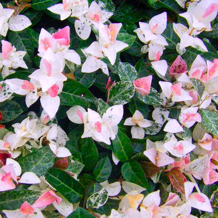 This stunning evergreen climber boasts uniquely variegated foliage, a vivid mix of creamy-white, green, and pink – that intensifies with cooler weather. In summer, it bursts into a mass of starry white blooms, releasing a sweet, jasmine-like scent that perfumes patios and pergolas.
