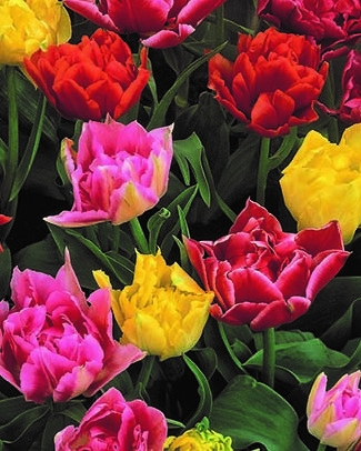 These double Tulips will give your garden a pop of gorgeous spring colour and add structure to any bed or border. Tulips have always been widely loved for their flowers that appear from mid-late Spring and are borne on sturdy stems that withstand wind and rain! These double Tulips are unique due to their extra layer of petals, giving you a bigger bloom and more vibrant colour. The colour of these tulips ranges from bright yellow to reds and pinks. These bulbs are easy to grow and pack a punch when planted together in a group or alongside other spring bulbs.