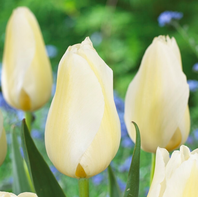 Tulip ‘Orleans’ is a stunning Triumph Tulip with bright, creamy petals. Its exquisite, cup-shaped flowers occur from mid to late spring, making it an eye-catching addition to borders, beds, and containers. This tulip, with its robust stems and long-lasting petals, is particularly great for cut flower arrangements, adding brilliant colour to indoor spaces.