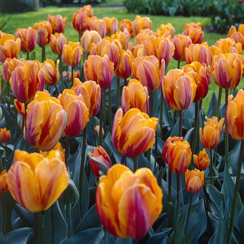 This Triumph tulip fits beautifully into formal and contemporary garden schemes, as well as cottage-style plantings. For maximum impact, plant in bold groups of 10 or more in beds, borders, or containers. Bulbs should be planted in autumn at a depth of 15 cm and spaced 10 cm apart, in well-drained soil and full sun to light shade. Combine with deep purple tulips such as ‘Canyon’ or late-flowering daffodils for a dramatic, colour-rich display.