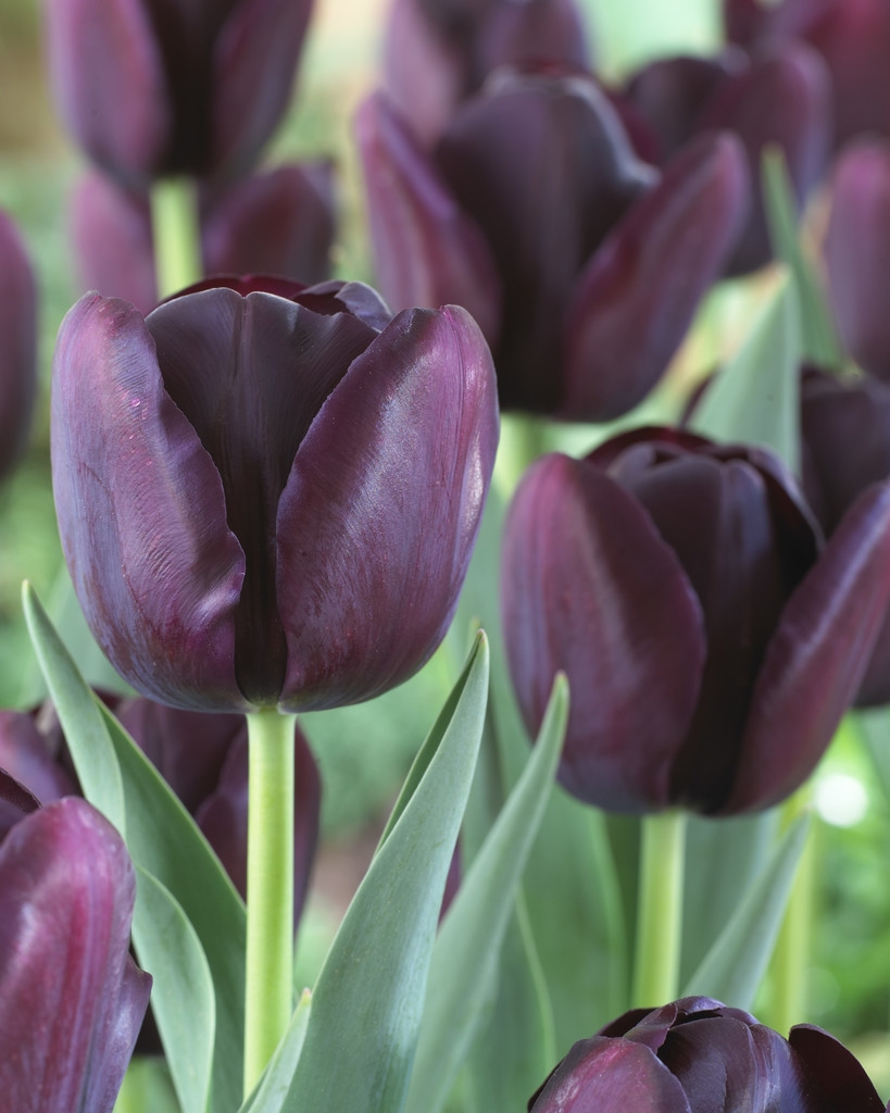 The stunning Tulip ‘Queen of Night’ dazzles with silky maroon, almost black flowers.